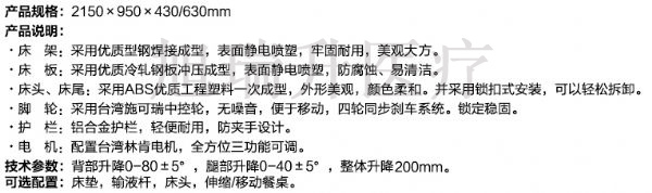 A6-ABS三功能電動(dòng)床(中控剎車、六檔護(hù)欄)