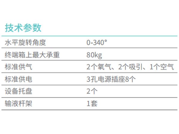 單臂外科塔,其結(jié)構(gòu)簡單緊湊,使用方便,是手術(shù)室理想的醫(yī)氣電源,網(wǎng)絡終端及儀器承載工作站。安裝采用天花板懸掛,設計合理,能在 340 度范圍內(nèi)旋轉(zhuǎn),可根據(jù)醫(yī)護人員要求,輕松移動塔體位置,其設備高度使醫(yī)護人員抬手可及,得心應手。